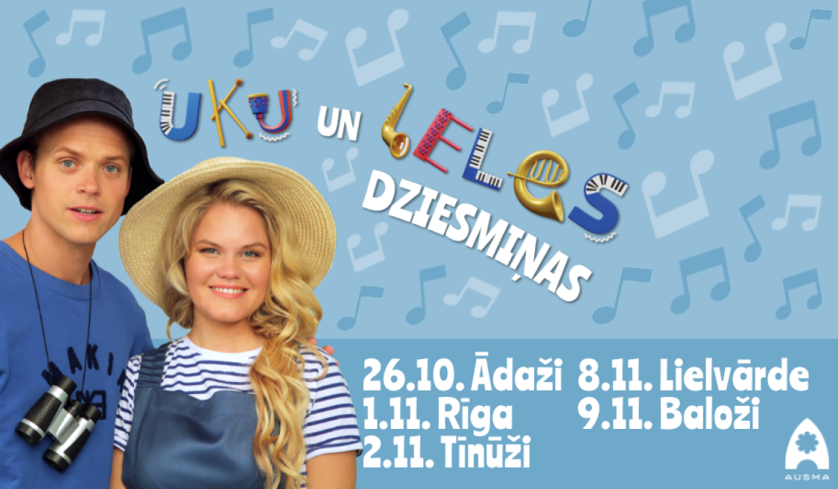 Sagaidot rudeni, bērnu iemīļotā TV raidījuma “Ukulele” varoņi aicina pievienoties Uku, Lelei un Dieziņam koncertos “UKU un LELES dziesmiņas”, kas jau no 26. oktobra izskanēs Ādažos, Rīgā, Tīnūžos, Lielvārdē un Baložos!