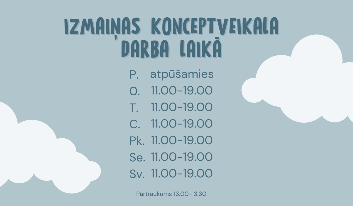 Svētdiena – 11:00 - 19:00